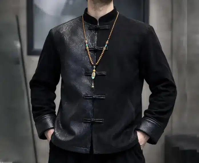 The Chinese Tang Suit Suede Jacket for Men blends traditional Asian fashion with modern streetwear design. Inspired by the classic Tang suit and Hanfu style, this jacket brings a cultural look with a bold contemporary twist. Made from premium suede leather, it offers a soft texture, comfortable feel, and stylish appearance perfect for everyday wear or special occasions.