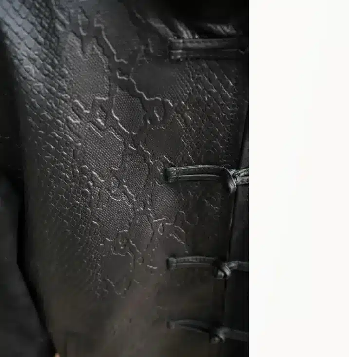 Traditional Chinese Tang Suit Suede Leather Jacket, Snake Skin Texture Hanfu Style Streetwear